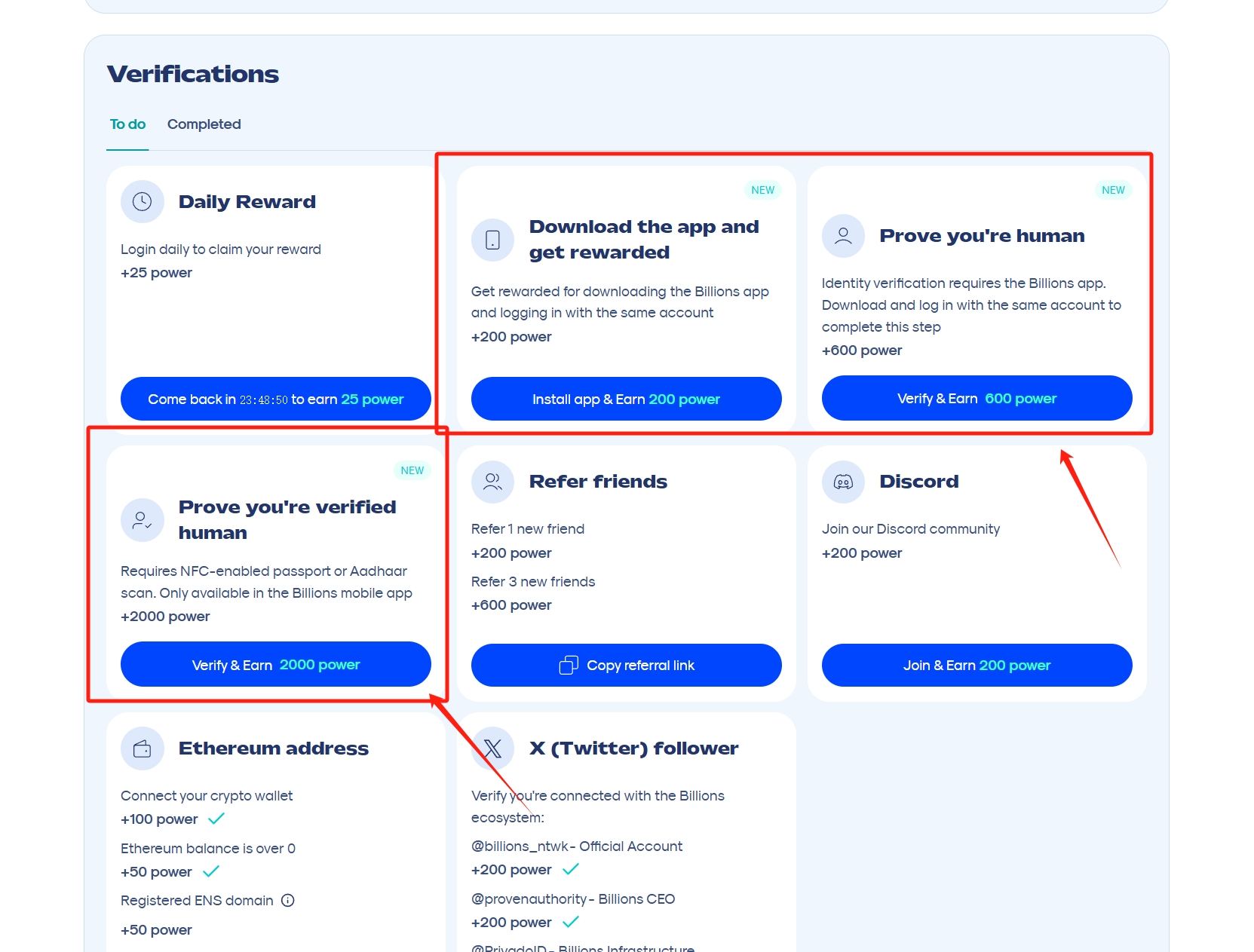 任务比较简单:链接钱包、链接推特、discord、链接邮箱、验证kyc,社交任务(关注、转帖、加discord、绑定ETH地址,有ENS域名+50分,余额>0 +50分