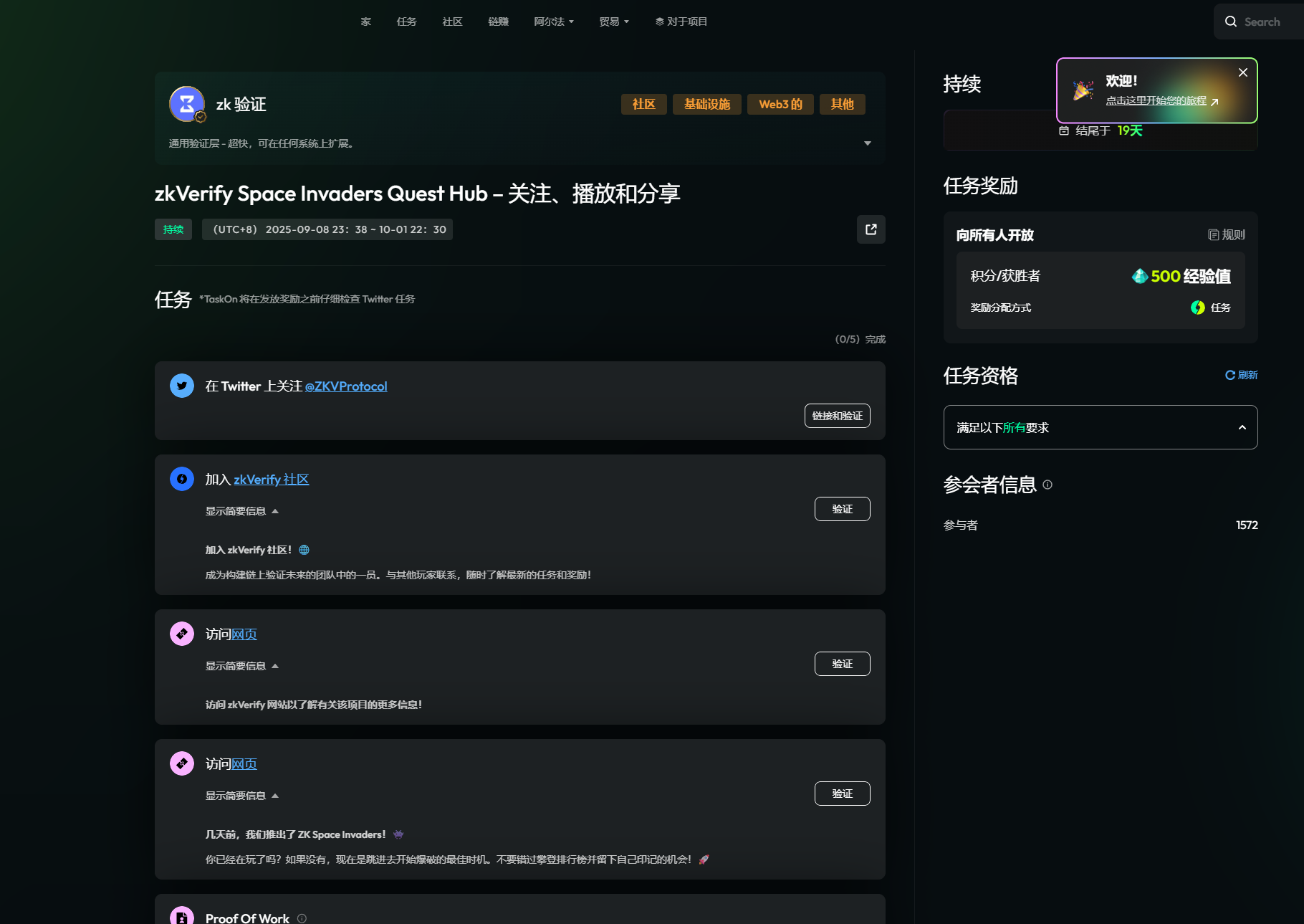 3.最后完成第三方任务:https://rewards.taskon.xyz/zkVerify?invite_code=exzKPe3Z