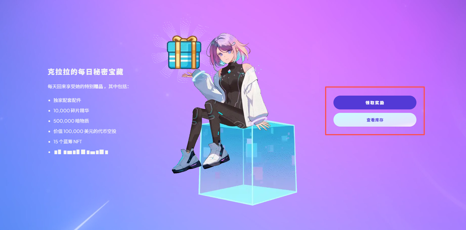 4.最下面可以看到每日的宝藏领取,这里相当于每日签到。