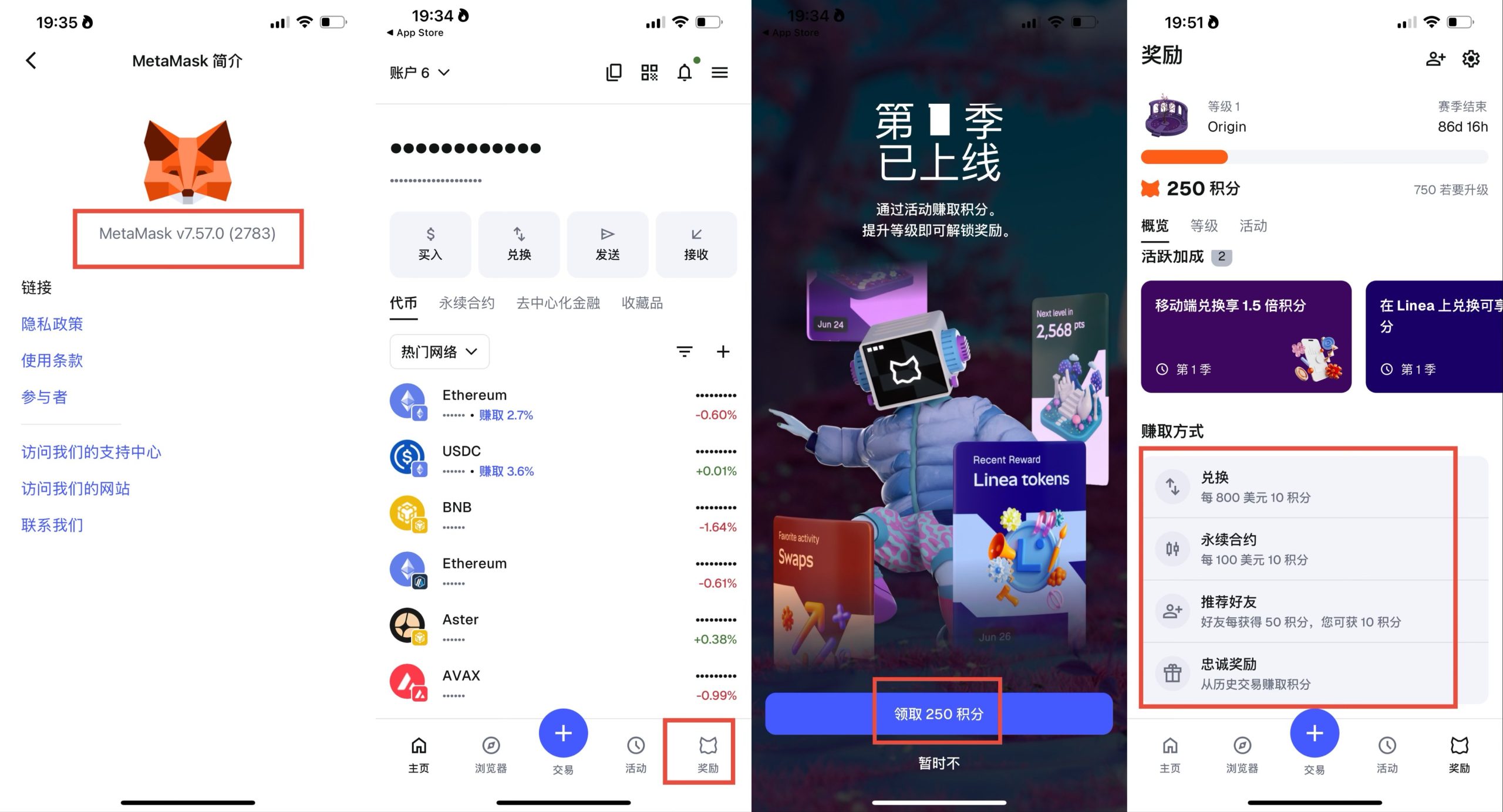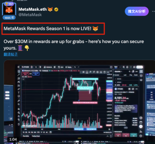 2025年10月,MetaMask正式推出“MetaMask Rewards”第一季,总额超过3000万美元的Linea代币空投。